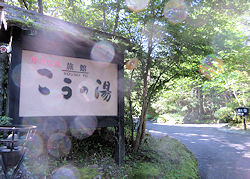 | 部屋に戻ってからは、部屋の露天風呂に入ったが、大浴場よりもずっとゆっくりできた。考えてみるとこの宿には露天風呂しかないようだ。なお、当然のこととも言えるが、この宿も昨日に引き続きネット環境はない。もちろん Wimax が使えるはずもない。まあ、ここは山の中だからはじめから期待はしていなかったが…。 |