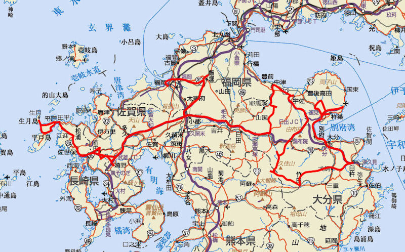| がすぐ近くにある自分にとってはこれと言ったものでもなかった。こんなことなら歩かないで、ここまで車で来て路上駐車で良かったかも、という感じだった。そんなわけで、やや時間を無駄にした印象を持ちながら今日の宿泊地へ向かうことにする。玖珠ICから高速に入り、大分道、長崎道を通って佐賀県の嬉野温泉へ。 | |