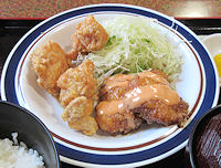 ↓ 左 トリ天定食 右 トリ天南蛮定食 ![]() |