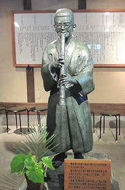 | が、何となく「唐揚げ」に近い感じでちょっと残念だった。あれなら家で作る方が美味しいかもしれない。 食後は「瀧廉太郎記念館」。近くの市立歴史資料館の駐車場に車を置いて徒歩ですぐだ。途中「瀧廉太郎トンネル」というのがあるのだが、トンネルに入ると荒城の月などの音楽が流れる仕組みになっている。3曲用意されているようで、行きと帰りで違う曲だった。その後は商店街の共用無料駐車場に車を置いて、「玄米ソフト」なるものを食べた。やや香ばしくて珍しい味だった。ちなみに、夜のニュースで知ったが、ちょうどこの時間の竹田が気温36.8度だったそうで、どうりで暑いはずだ、と納得。 |