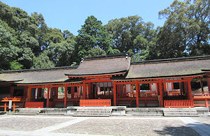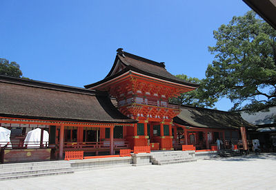 実は「宇佐神宮」という名前は、今回の旅行を計画するまで聞いたことがなかったのだが、全国の八幡神社の総本山だそうで、そもそも「神宮」という名称だから格式も高い。実際行ってみると、参道も長いし、「上宮」「下宮」があるなど規模もかなり大きい。そして、やはり有名だからだろうが、けっこう人も多い。ここは参拝方法が変わっていて、「二礼四拍手一礼」となっている。そして上宮も下宮も参拝するところがそれぞれ3カ所ずつあって、みんなその3カ所でお参りしていたのでそれに倣った。広くてけっこう時間がかかったので、参拝後はちょうど昼時になった。予定通り、駐車場近くの土産物店が並んでいるところにある「ねぎ焼き」の店で軽い昼食をとる。具は「ねぎ」だけという、お好み焼きと韓国のチヂミの中間くらいの感じでなかなか美味しかった。量がわからなかったので、2人で1枚にしたのだが、1枚ずつでも良かったかもしれない。久々のラムネを飲みながら美味しくいただいた。 上宮の南中楼門。なかなか荘厳で美しい → |