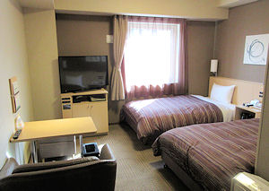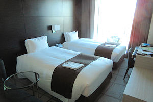 | 今日はいろいろ行動したが、旅行のテーマとなっていたものはひとつもない。2泊3日くらいならこういう当てのない旅もできるかもしれない。明日は最後のテーマである「築地市場」。今年行かなければ行かないうちになくなってしまうから最後のチャンスなのだ。以前東京に泊まった時にも行こうかという話になったが、朝早くから行動するのはちょっと、ということでやめたことがある。しかし、築地だからといって、そんなにめちゃくちゃ早く行かなくてもいいのだ、ということで決意した。若干はガイドブックで下調べはしたが、覚えきれないくらいの店があるので「出たとこ勝負」ということにした。 ← 標準的なツインルームだが、高層階なので景色は良い。高層すぎて全景は写せなかった。 |