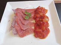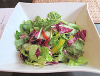 | 最近ではどんなときでも「サラダファースト」を心がけていて、まずは生ビールと野菜サラダを注文。この野菜サラダはおかわり自由という珍しいパターンだったので、後から少し小さめのものを追加した。メニューに載っていたラクレットの写真が美味しそうで注文したが、すでにチーズが固まっていて残念だった。 |