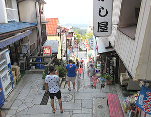 その後は順調に走って伊香保温泉到着。着く少し前に「水沢うどん街」を通過して、かなり後ろ髪を引かれたのだが、ここで食べると夕食を食べられなくなってしまうので我慢。今日は今回の旅行で唯一の温泉で、夕食も旅館で食べる。部屋は和洋室をとったので、それなりに広々していて満足できるレベルだ。旅行で調べるまで走らなかったが、ここの温泉には「石段街」という有名な場所があって、この旅館はその中間ぐらいの場所にある。そんなわけで、チェックイン後はすぐにその「石段街」へ行ってみた。365段だということなので、とりあえず一番下まで行ってから上ることにした。山登りは大したことなかったが、やはり登るのだ。365段を上り終えて、さらに歩くと伊香保神社がある。さらに歩いて行くと露 |