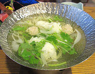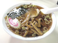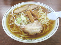 | と大盛りしかないので、間違うことはないようだ。当然のようにみんな相席だ。そして、ほどなくラーメンが運ばれてきた。色の薄い、透明スープに青竹で打った独特の手打ち麺。やはり、スープもそうだが、その土地によって麺は大きく違う。手打ちらしくやや平麺の高加水麺は個人的には好みと違うが、旅先の文化に触れているようで楽しい。透明あっさりのスープはとても美味しかった。後から調べてみると、ここはかなりの老舗のようで、人気店の一つだった。 |