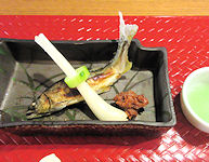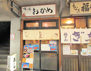 | ↑築地市場入口 ↓ 行列がなかった「おかめ」 | 付近を見てまわり、串に刺さっただし巻き卵を食べたがこれまたとても美味しかった。などと言っているうちに、ここが「場内」で「場外」も見よう、などということをすっかり忘れてしまった。意外と早く見終わったなぁ、などと思いながら戻ってきてしまったのだ。「場外」を見ないできてしまった、ということに気がついたのは旅行から帰ってきてからだったというお粗末な話だ。 築地を出た後は、ホテルから見えた「浜離宮恩賜庭園」に行ってみたがまだ開園前でかなり待つ感じだったので、銀座方面にぶらぶら歩いて歌舞伎座まで行った。しかし、公演は翌日からのようで、さらに地下や5階ギャラリーもオープン前。やはり築地で行動というのは朝早いということなのだろう。仕方がないので部屋に戻ることにして、ホテルが入っているビル1階にあるナチュラルローソンという旭川 |