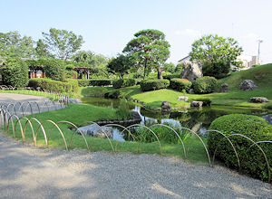 | 写真上 左 庭園全体の案内。ここを左側に向かっていき、裏門のあたりからまた左に行ってから、右の「入徳門」にたどり着く 写真下 左 「入徳門」から入ってしばらく歩くと学校の入口である「学校門」がある。奥に「孔子廟」がある。 中 庭園が美しい。 右 「方丈」と「書院」 |