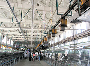 | ても「おおーっ!」とか「なるほど!」という気持ちになるようなところはあまりない。とりあえず世界遺産だから見ておこう、という感じか。ところで、先ほど「臨江閣」が改修中だったが、何とこの「富岡製糸場」も改修中だった。全体を大きく囲っての工事で、改修中の現場を普通は見られない上の方から見ることができたのは良かった。姫路城の改修の時にもそういう場面があったのだが行くことができずに残念な思いをしていたのだ。 |