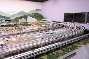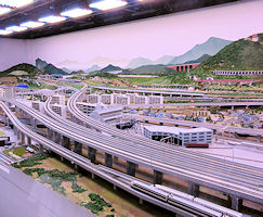 | ↑ 旧国鉄時代のいわゆる「国鉄カラー」。とても懐かしい 少し上から見渡した展示場の全景。結構広い→ ↓ あんな広いジオラマは初めてだ。自分の家にも作ってみたいものだ。 |