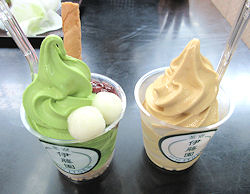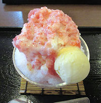 ←甘味処「あかりや」 ↓かき氷 左 宇治ミルク金時 右 粒々いちごミルク |