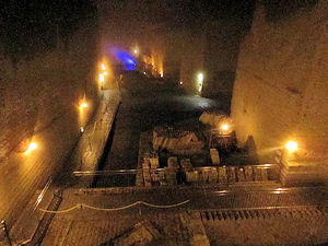 | 写真上 左から 地下の採石場に降りる途中 中と右 まるで神殿のように 整然と採石されている 写真右 写真下 |