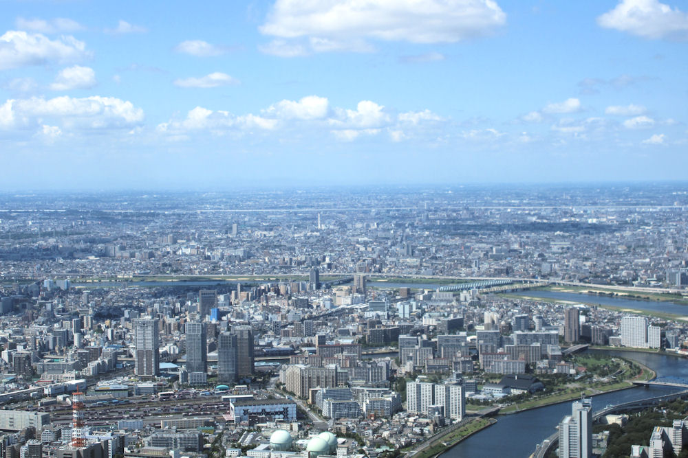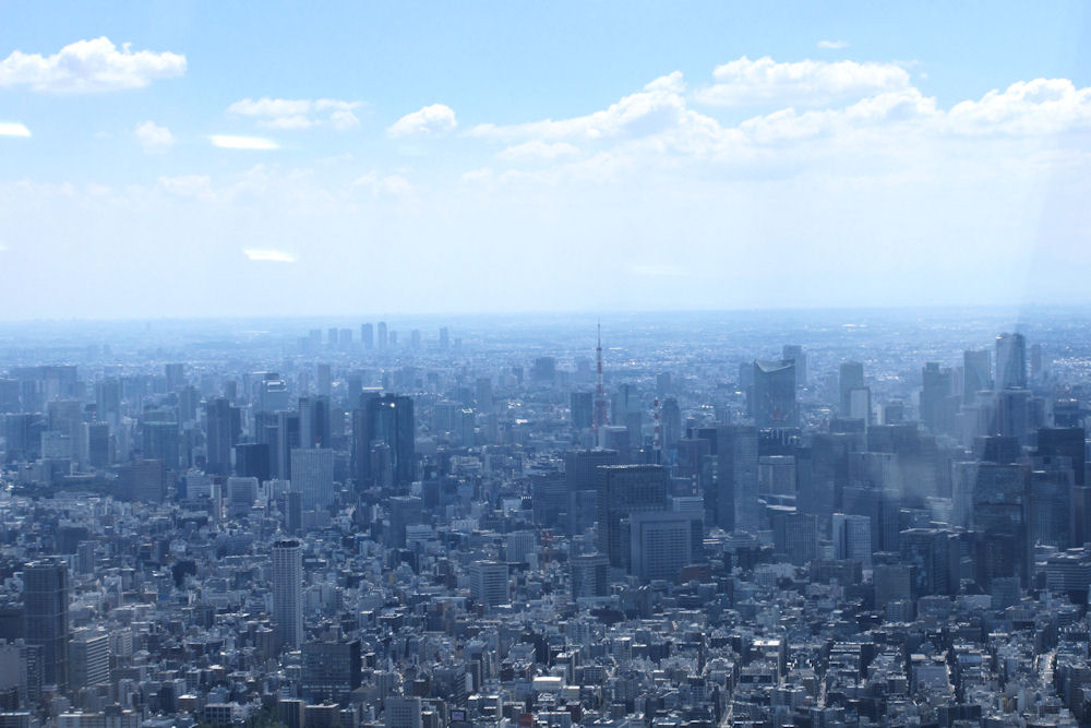 | しばらく景色を眺めた後はエレベーターで降りて(ここはフロア345)、さらに5m降りたところがフロア340という帰りのエレベーター乗り場になる。そのフロアにあるカフェで景色を見ながらソフトクリームを食べて下まで降りてきた。その後はなにを買うでもなくソラマチをぶらぶらしてスカイツリーを後にした。 |