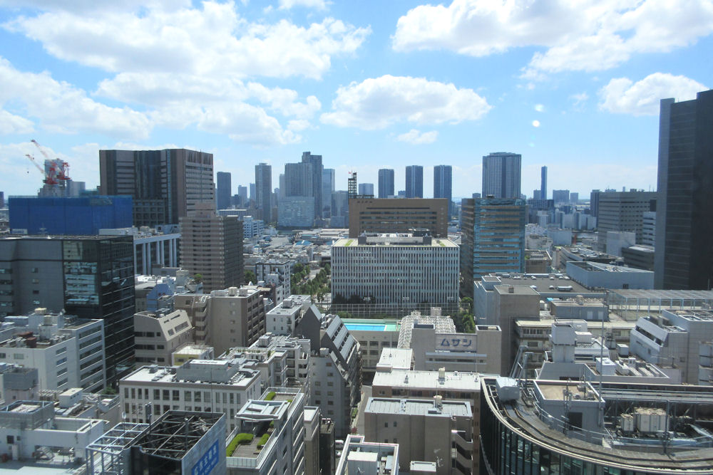 | 写真上 上段の2枚は350mと450mから同じ方向を写したもので左が350m。左端に同じビルが見える。 下段左は遠く新宿方面。中央付近に東京ドームが見える。右は中央に東京タワーが見える。 全て写真をクリックで拡大 写真下 ホテルの16階フロントロビーからの景色 左 浜離宮庭園方面 中 奥の方、中央のビルの陰に築地市場が見える 右 東京タワーが比較的近い 全て写真をクリックで拡大 |