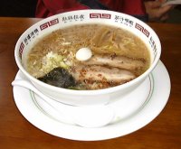 | とんこつスープのこってりしたラーメンが売りの店です。しお味は、非常にこってりした「とんこつ」と、ややこってり感を押さえた「とんしお」の2種類があります。とんこつを食べてみましたが、スープがややドロッとしている感じがするほどこってりとしています。背脂を大量に使っているようで、なかなかおいしいと思います。チャーシューは口の中でとろけるほど柔らかくとてもおいしい。スライスのニンニクがたくさん入っているのが変わっています。しょうゆ味は何となく変わった味という印象です。やや魚系のだしが強いのかも知れません。私はちょっと苦手でした。やはりどうせ食べるなら「とんこつ」でしょう。 | ![]() |
