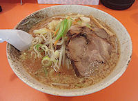| 2011年5月末に緑が丘サニーショッピングプラザにできた店です。デカ盛を売りにした店で、最大の「ぶた番長盛」は麺3玉、野菜1kg、極厚チャーシュー5枚というすごさです。しかし、単にデカ盛だけの店ではなく、味もしっかりとしています。普通のみそラーメンは量も常識的でシャキシャキした野菜も極厚のチャーシューも美味しいものです。注文時にスープの濃さ、背脂とニンニクの有無を聞かれます。普通の濃さで背脂付きを頼みましたがちょうど良い味でした。ただ、ニンニクはレンゲ1杯分くらいありそうな量だったので、全部溶かす勇気がありませんでした。あっさり系のラーメンもあり、「昭和中華そば」という名前ですが、背脂など同じことを聞かれます。同じ味で比べていないのでわかりませんが、野菜がないバージョンという気もします。その他つけ麺、辛い系(地獄の1丁目から神様ヘルプまでの6段階)、チャーハンなどがあり、どれも楽しめそうです。 ちなみに、麺は「中太ちぢれ麺」と「太麺」があり、太麺はつけ麺に向いている感じです。中太麺は旭川としては太い方ですが、札幌系ではありません。また、普通のラーメンは麺と野菜の大盛りが無料です。 |
