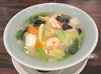 | イオンモール旭川西店の1Fレストラン街にある中華料理店です。昼のセットメニューがお得なようで休日の昼時は混み合っています。ラーメンは基本三味がそろっているというのではなく、特徴のあるメニューです。今回食べたのは「海老のあんかけ塩ラーメン」で、スープがとんこつなら長崎チャンポンになりそうな雰囲気でした。野菜もですが海老がたっぷりと入っていて、あんかけのせいでとても熱いです。値段は高めですが、内容を考えると仕方ないかもしれません。ランチのセットにあった「麻婆豆腐ラーメン」は単品ではメニューにありませんでした。 |