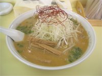 | 以前「蝦夷旭川店」があったショッピングプラザ内に2004年2月にできた店です。開店直後に行ったお客さんに配られたライターには「姉妹店 風連正麺」と書かれていたという話ですが未確認で、味的には似ているという感じはありません。また、メニューには「一麺入魂」と書かれてあり、少し前にできた「麺屋さくら」との関係も気になります。スープは2種類で、しょうゆラーメンはとんこつと普通の2種類があります。普通のしょうゆラーメンはあっさりスープでとても食べやすい美味しいラーメンでした。みそラーメンはマイルドで、こってりなのかあっさりなのか微妙な感じです。個人的にはもう少し塩分があってもいいような気がしました。チャーシューは柔らかいものでしたが、それとは別に「トロ肉チャーシュー」というのもあるようです。接客も良く感じの良い店でした。 | ![]() |