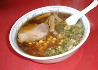 | 旧店データ 全く同じ場所で営業していて、あるとき「本州に移転」とかで閉店してしまいました。魚だしがかなり効いたスープで、他にも何か変わったものを使っているかもしれません。チャーシューは柔らかくて美味しいですが、しょうゆラーメンはやや臭みがあるような感じで私はちょっと苦手です。みそラーメンは、現在とほとんど同じで、その魚だしが効いたスープを、ショウガが効いたみそがほどよくうち消しています。甘さに比べてやや塩加減が強いという気もしますが、こってり系のみそ味です。たっぷりのスープの中にたくさんのモヤシとコーンが標準です。あのスープを全部飲むのは大変そうです。 |