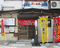 | 旭川では数少ないかに料理専門店ですが、2011年の初夏にランチタイムを始めて「かに釜飯」とラーメンを食べることができるようになりました。どちらも激安で、ラーメンは450円、かけラーメンは330円です。一応メインは数量限定のかに釜飯500円のようです。しょうゆラーメンはモヤシが載ったタイプで、チャーシューも2枚付いていることを考えればお得感一杯です。いわゆる食堂系で、ほんのり甘みもあるあっさりラーメンです。なお、夜の部は17:30〜21:00で、ラーメンを食べられるかどうか不明です。 |