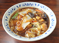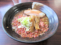 | 何の前触れもなく、住宅地の中に突然できた店で「かず」と読みます。メイン通りにないので全く知りませんでしたが、以前も飲食店を経営していて、ちょっと間を置いてこの店をオープンしたらしいです。ラーメンはレベルが高く、旭川らしいしょうゆラーメンになっています。チャーシューは薄めですが口の中で溶けてしまうタイプでとても美味しいです。みそラーメンは甘味のあるみそダレで、こってり感はそれほどでもありませんが、食べ応えはある美味しいラーメンです。野菜は見た感じよりは多いという印象で、みそ野菜にしてもあまり変わらない感じです(種類は増えます)。しおラーメンは表面の脂は比較的多めですが、まろやかでとても美味しいです。個人的には三味の中で一番好きです。2015年になってチャンポン風ラーメンがメニューに加わりましたが、まさにチャンポン風の味になっています。また、2016年冬の新作メニューは「海老ラーメン」ですが、流行の海老スープではなく、若干の海老脂もかかっていますが、小さな干しエビが大量にトッピングされているというものです。その量が半端でなくやや食べにくい感じでした。スープはしょうゆラーメンがベースです。五目あんかけはしょうゆベースで、具もたくさんで食べごたえがあります。 |