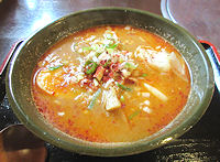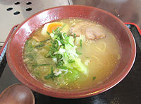 | 「北の空」という焼き肉店だったところにできた、昼はラーメン専門で夜は居酒屋という店です。嵐山に本店を持つ店で、本店では江丹別そばを出す店として営業しているので、そばアレルギーの身としてはアレルギーを伝えると別茹でにしてくれますがちょっと気が引けました。しかしこの忠和店はそばがないので安心して食べられます。本店同様メニューの先頭はみそで(白、赤、合わせの3種類)、しかも「辛みそ」は別立てで先頭です。辛みそを食べて見ましたが、それほど辛くなく、まろやかさと程よいこってりで美味しくいただきました。しおラーメンは、みそではあまり感じなかった魚介系の味が比較的強く感じます。個人的にはみその方が好きです。なお、2回目に行ったときには辛みそが150円も値上がりしていました。 |
