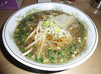 | かなり以前「万来軒」があった建物に2011年晩秋に新規オープンした店です。表面にはそこそこ脂がありますが、基本的にはかなりあっさりのスープで、塩分もかなり控えめです。一番の特徴は麺で、食感は旭川風ですが、「博多ラーメン」のような極細で、旭川ではあそこまで細い麺を出す店はないでしょう。表面の脂のために最後まで熱々で、細麺が口の中で泳ぐのでやけどに注意です。すぐ横の「かがりの湯」の駐車場の一部が利用できるので、車で行っても大丈夫です。化学調味料を使っていないとのことで、後味がスッキリした優しい味でした。醤油やネギなどいろいろと素材にはいろいろこだわりがあるようです。しおラーメンは一見醤油かと思うような色がついていますが、食べた感じは明らかに塩で、ついついスープもたくさん飲んでしまうようなとても優しい味です。 |