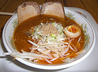 | 本来的にはホルモン焼きの店で、日中の3時間のランチタイムにラーメンを出している、というかラーメン店になる感じです。ランチメニューはほとんどがラーメンになっています。その中でもみそラーメンに力を入れていて、赤・白・黒の3種類あります。赤は韓国系の唐辛子で辛さよりもうまみが強いとのことで、スープの見た目ほど辛くありません。甘みもあり美味しいラーメンです。まだ食べていませんが、ご主人の話では、白は白ゴマ担々麺風、黒は黒ゴマ担々麺を香ばしくした感じ、ということです。やや価格が高いのが気になりますが、味は良いです。なお、いわゆるミニラーメンだと思いますが、8分の5ラーメンというネーミングがおもしろいです。夜の部のサービス券をくれました。 |