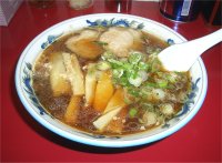 | メニューはラーメンばかりで、基本的にはラーメン専門店なのだと思いますが、2階に広間があるようで(見ていませんが)宴会ができるようです。宴会では焼き肉メニューが中心となるようで、ラーメンも焼き肉屋さんによくあるタイプです。ただ、焼き肉屋さんのラーメンと違うのはしょうゆだけではなく、みそ・しおもあり、さらには辛口のみそなどというバリエーションがあるところで、専門店であることを感じさせます。しょうゆラーメンはやや塩分が強く、表面の脂分は比較的多めであるわりに透明系のあっさりスープで美味しく食べられます。 | |