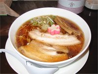 | 三愛ラーメンが閉店した跡に、2003年12月に新規開店した店です。スープや素材にこだわりを持っているということで、店構えにも大きく「こだわり」が書かれています。スープは「清造り」「白造り」「津軽鶏」の3種類あって、津軽鶏以外には基本三味がそろっています。津軽鶏はしょうゆとしおだけで、そのあたりにもこだわりを感じます。「清造りしょうゆラーメン」はあっさりとした昔風のラーメンです。チャーシューは最近流行の口の中で溶けてしまうような柔らかいタイプですが、ちょっと脂身が多いかもしれません。みそラーメンは、「清造り」はもやし有り・チャーシューなしで「白造り」のとんこつみそはもやしなし・チャーシュー有りです。とんこつみそはとてもまろやかな味わいです。 | ![]() |