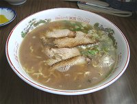 | 国道40号線を北上した和寒町にある店で、「食堂」と言いながらメニューはしょうゆラーメンとライスのみ。建物はちょっと怪しい(失礼)感じですが、おばちゃんが一人で作るラーメンの味は抜群です。もともとそんなにたくさん用意していない麺やスープがなくなったら終わるので、午後3時以降は開いていないかもしれません。それ以外でも4時以降は閉まっています。具はチャーシュー(薄いけれど味がいい)とメンマとネギというシンプルなもので、典型的な旭川ラーメンの雰囲気です。ライスを注文しなくても必ず漬け物が出てきます。 国道沿いのローソンの手前(旭川から)の信号を右折して踏切を渡り、50mぐらい進んだ左手にありますが、注意して走らないと通り過ぎるかもしれません。 |