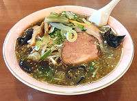 | 千歳の有名店で、みそがメインのようです。みそラーメンは赤と白の2種類があり、赤みそラーメンは赤みそらしい味ながら辛さは標準的です。モヤシ等の野菜の量は多めで、根昆布がやや特徴的な味を出しています。チャーシューは柔らかくてとても美味しく、全体的にも満足できる味ですが、価格的にはかなり高い部類に入り、個人的にはどうなのかな、という感じです。しかし、食べている間にも次々とお客さんが入ってくる人気ぶりでした。 |