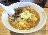 | オホーツク海沿いの浜頓別町にある店で、この規模の町としては珍しいラーメン専門店です。人気があるようでほぼ満席の状態でした。海岸沿いに行くとなぜかしおラーメンを注文するのですが、ここでも例外なくしおラーメンを。Wスープと豚骨スープの2種類があるようで、今回はWスープを食べてみました。見た目も食べた感じも想像とは違ってそれほど透明ではないスープで、旭川系に近い美味しいラーメンでした。 麺は、加藤ラーメンの幟が立っていて、完全な旭川麺だったのも美味しくいただいた理由かもしれません。 個人的にキクラゲは不要でしたが、チャーシューは美味しかったです。2回目はやはりWスープのしょうゆで、個人的にはこちらの方が好きでした。 | |