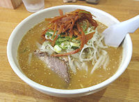 | 熊っ子ラーメンの東鷹栖店があった建物に2018年に出店した新店です。スープはとんこつ系ということですが、いわゆる山頭火系というよりは純旭川系の魚ダシ少なめという感じです。みそは赤みそと白みその2種類があります。みそ・しお・しょうゆの4種類のスープ全てに生姜ラーメンがあって、スープに生姜が溶け込んでいる他に千切りになった大量の生姜がトッピングされています。しょうゆラーメンはスープのおかげでまろやかにはなっていますが、ややしょうゆが主張した感じです。チャーシューはサクサク系で程よい味付けの美味しいものです。 |