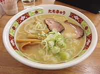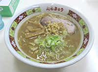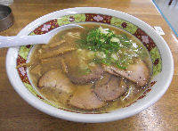 | 2008年12月、士別から移転して旭川で勝負に出た店です。老舗のジンギスカン肉店「日乃出食品」という店と一緒に元アルペンがあった建物にオープンしました。士別時代から旭川ラーメン系の味で、しばらく食べていませんでしたが、一層まろやかな感じになったような気がします。しょうゆラーメンは塩分もほどほどで、喉ごしの良い自家製麺は一気に食べることができます。同じスープにすり下ろした生姜を混ぜ、さらにレンゲに刻んだ生姜を載せて出す「生姜ラーメン」も美味しそうでした。チャーシューは薄めですが柔らかさ・味ともに良いと思います。みそラーメンは白みそベースの辛さをほとんど感じないまろやかなもので、とんこつスープにホタテなどの魚介類を合わせたような味です。色的にもみそラーメンという感じがしなく、長崎ちゃんぽんを連想するような味でした。辛系のみそは別メニューであります。しおラーメンは濃厚なスープで、とろみを感じるほどですが、くどくない味で美味しいです。しょうがラーメンは上におろし生姜がトッピングされていて、さっぱりと食べることができます。こだわりがあるとのことですが、数人で行ってメニューが異なると時間がかかるのがやや難点です。場所的には微妙ですが駐車スペースには困りません。 |