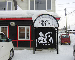 | 鷹栖に「鷹の爪」という、夜にスナックか居酒屋になるラーメン店があるのですが、そこの2号店として、東光の春夏冬跡に2012年1月2日にオープンしました。鷹栖の店では「鷹栖しょうゆ」「札幌みそ」「函館しお」というメニューですが、こちらの店は「黒虎醤油」「赤虎味噌」「白虎塩」というメニューになっています。しょうゆを食べた感じでは鷹栖の店とほぼ同じ感じの味で非常にオーソドックスなラーメンでとても美味しいと思います。しおラーメンも透明度は中間系で、まろやかな味で美味しいです。2号店も昼と夜の2部構成で、夜は焼き鳥を中心とした居酒屋になるようです。みそラーメンは鷹栖の店と同様に、いわゆるよし乃系でモヤシもたっぷりです。昼の部だけだったラーメンが夜の部でも食べられるようになるとのことでしたが、夏に行ったときには夜のメニューにラーメンはありませんでした。また、ネーミングも「黒虎」などがつかない普通の名前になり、値段も下がりました。 |